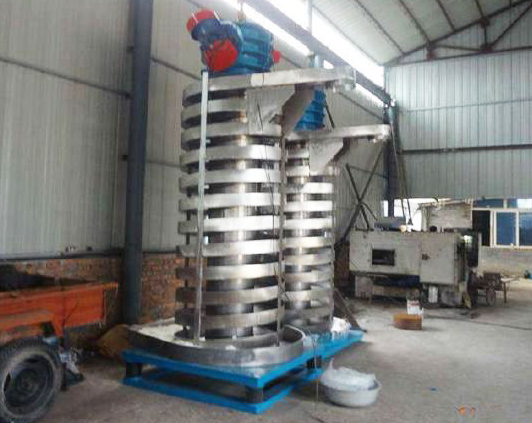 上振式垂直振動提升機驅(qū)動裝置的振動電機安裝在輸送塔的下部,兩個振動電機對稱交叉安裝。 輸送塔由管體和焊接在管體周圍的螺旋輸送槽組成。 輸送塔設(shè)置在減振裝置上,減振裝置由底座和隔振彈簧組成。